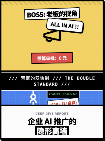 效率是提了,但那是员工自费、冒着违规风险换来的。老板既不给好用的铲子,也不给买铲子的钱,却想要挖出金矿。 这种情况下,谁会大张旗鼓地宣传 AI 提效?那不是自投罗网吗?
